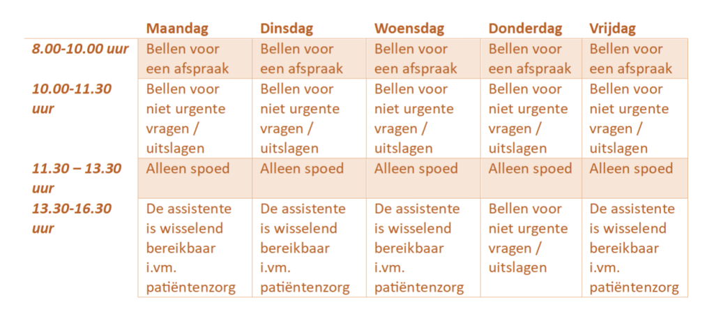 Hieronder vindt u een overzicht van de telefonische bereikbaarheid.