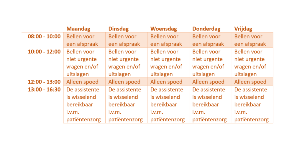 Hieronder vindt u een overzicht van de telefonische bereikbaarheid.